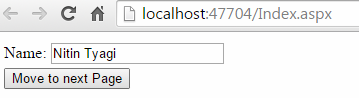 As expected we have the Name transferred from the Index page to the Display page. So without using sessions we have accomplished this scenario.
