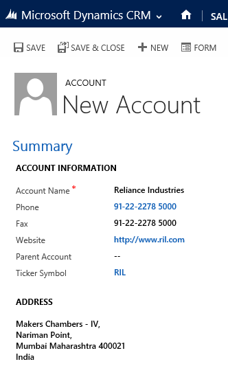 In our scenario let's consider we have CRM deployed for a health care institution. Let's set up a few accounts using the default setup.