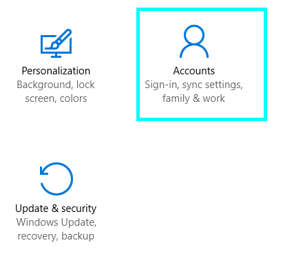 Clicking on settings opens a new window with many options. Click on Accounts.