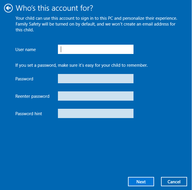 After clicking on Add someone else, a new window will open on your system with the name of Add a User.