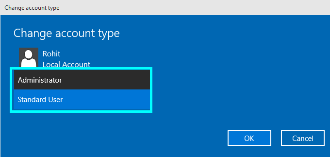 Windows 10 provides a lot of new features, changing the user account type of a friend or family is one of them. Using it you can give them more or less control over the computer. With the help of these features, you could protect your system from other users or can give additional permissions to new users, so they can easily install new software. There are two different account types.
