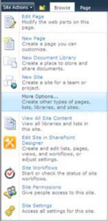 In your SharePoint site, choose site Actions and then choose more options. You can access the create page dialog. You can also access this by clicking on the create button in the "View all site content" option.
