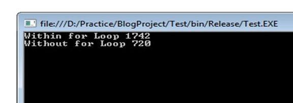- Console.WriteLine("Within Loop " + sw.ElapsedTicks);
