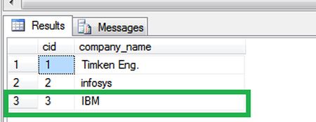This is the status of the current database and since we will pass a key value of 3, the company_name “IBM” will be deleted.