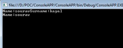 - Console.WriteLine("Name:"+ name + "Surname:"+ surname);