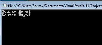 Person p1 = new Person { name = "Sourav", surname = "Kayal" };