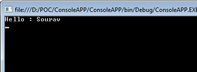 - Console.WriteLine(obj.myFunction("Sourav"));