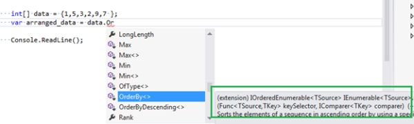 Let's have a look at the following example. Here we are trying to arrange an array using extension methods of the .Net library function.