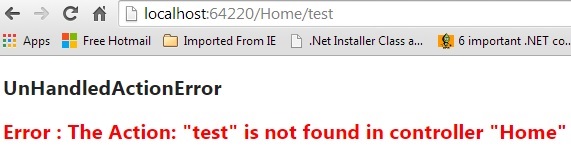 Then the error will not exist if the browser tries to execute any action method that is not available in the HomeController. Okay, great . But what about the DemoController? Do we need to override HandleUnknownAction there too? Do we need to do the same for every controller that we add in the future? Can't we put that handling in one place so that all controllers can access it without modifying them and without duplicating the same code? Good question, right? This question came to my mind when I was reading an article. Actually that is a