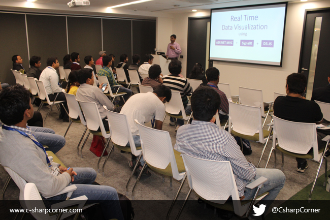 It was then followed by discussing Real Time Data Visualization in ASP.NET MVC using SignalR and D3.js by Sunny Kumar (@Sunny_Delhi).