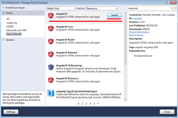 Search: "AngularJS" then click on "Install".