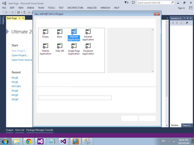 File -> New Project -> ASP.NET MVC 4 Project then select "Internet Application".