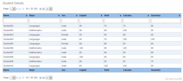 - overrideCtx.Templates.Header = "<div class='pager'>Page: <select class='gotoPage'></select><img src='/sites/Demo/SiteAssets/addons/pager/icons/first.png' class='first' alt='First' title='First page' /><img src='/sites/Demo/SiteAssets/addons/pager/icons/prev.png' class='prev' alt='Prev' title='Previous page' /><span class='pagedisplay'></span> <!-- this can be any element, including an input --><img src='/sites/Demo/SiteAssets/addons/pager/icons/next.png' class='next' alt='Next' title='Next page' /><img src='/sites/Demo/SiteAssets/addons/pager/icons/last.png' class='last' alt='Last' title= 'Last page' /><select class='pagesize'><option selected='selected' value='10'>10</option><option value='20'>20</option><option value='30'>30</option><option value='40'>40</option></select></div><table id='myTable' class='tablesorter'><thead><tr><th>Name</th><th>Major</th><th>Sex</th><th>English</th><th>Hindi</th><th>Calculus</th><th>Geometry</th></tr></thead><tfoot><tr><th>Name</th><th>Major</th><th>Sex</th><th>English</th><th>Hindi</th><th>Calculus</th><th>Geometry</th></tr></tfoot><tbody>";