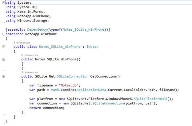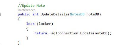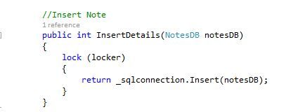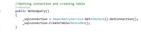 Now let's add a bit of code for the manipulation of the database by creating a class "NotesQuery.cs". The code for the manipulations is given below.