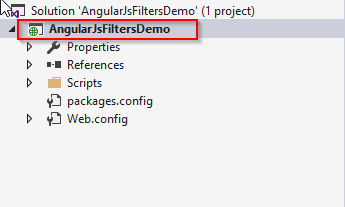 You can see AngularJsFiltersDemo project structure as in the following screenshot.