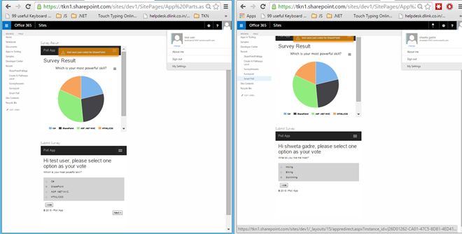 After reading this article you will be able to create a SharePoint app part that displays the survey results chart that is updated at the instant someone submits a vote in the other app part. So one app part acts as the sender and one receiver, unlike a chat app where both the clients act as senders and receivers.
