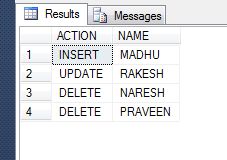 - OUTPUT $ACTION AS [ACTION],COALESCE(INSERTED.NAME,DELETED.NAME) AS [NAME];