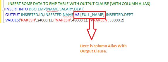 - OUTPUT INSERTED.NAME AS [FULL_NAME],INSERTED.DEPT INTO EMP_BACKUP(NAME,DEPT)