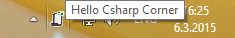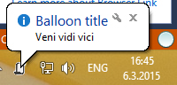 Adding some handy information in the form of a balloon tip is as simple as filling in a few related properties and calling the ShowBallonTip method with the timespan in a form of milliseconds. This specifies how long the balloon tip will be shown. As you may have guessed, the right place to call this method is the resize event.