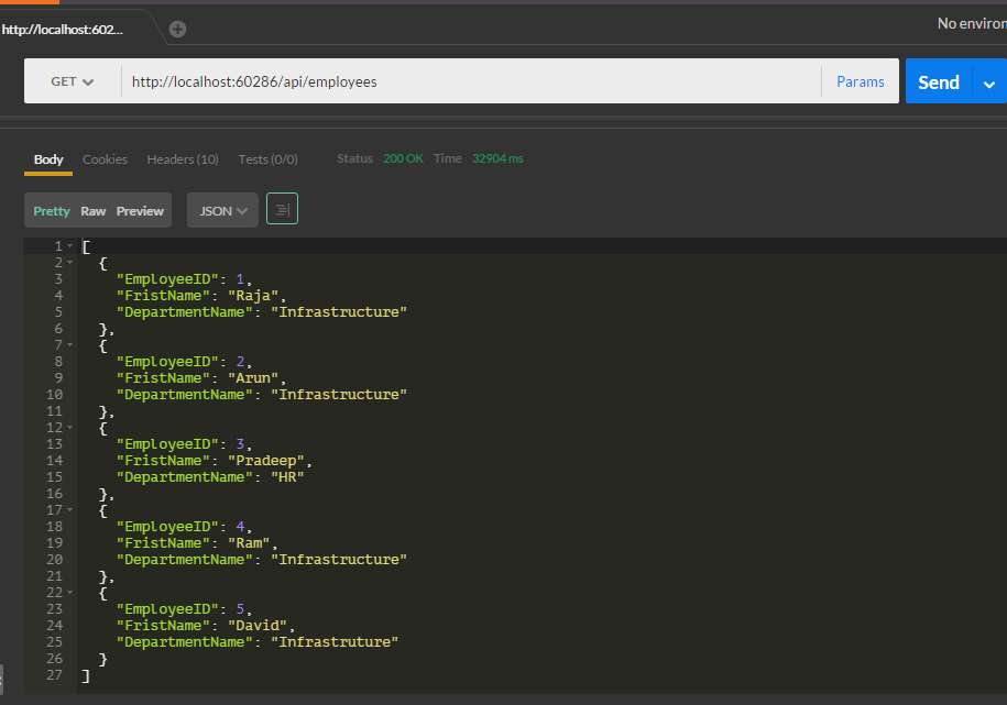 Now, the response of the /api/employee service as shown in the following figure 2,