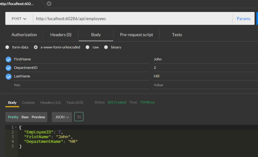- public async Task < IHttpActionResult > PostEmployees(Employees employees)