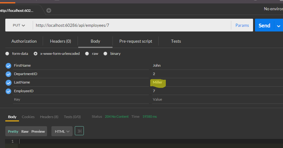 - public async Task < IHttpActionResult > PutEmployees(int id, Employees employees)