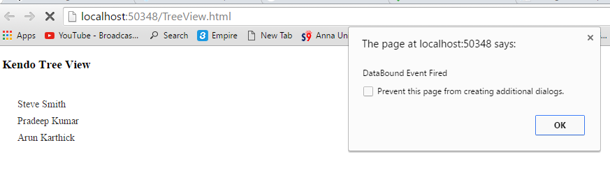 Now our API's are ready, so let us play with events in Kendo Tree View.
