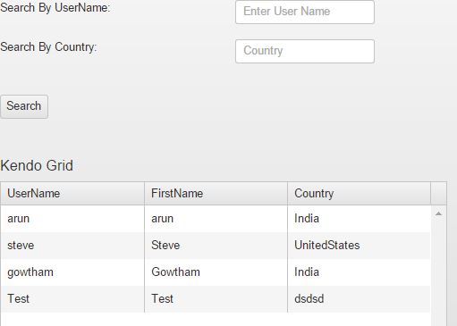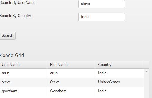 Now let we combine both Search Based on UserName and Search Based on Country together.