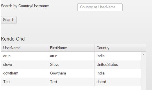 MultiStep Registration Form With Kendo UI MVVM Pattern Using Web API 2 and EF5 because I will use the same Web API service and the database table to explain this external and internal search in Kendo Grid UI.