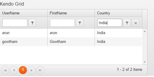 There are two possibilities to do the search/filtration in the Kendo Grid, they are: