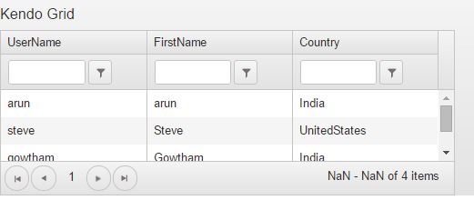 Now we will see the magic of Kendo built-in internal filtration functionality using the data-filterable property that is simple to implement and more powerful.