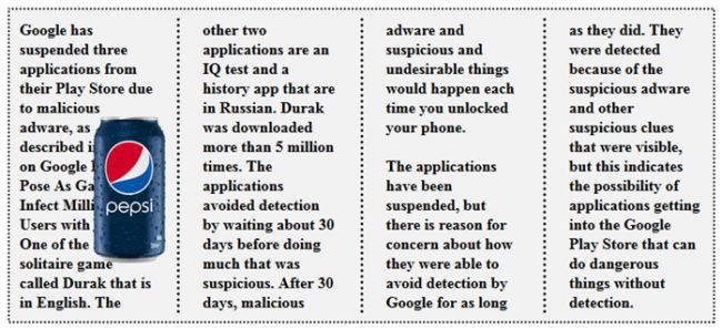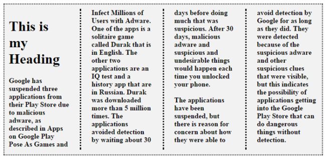 As we can see in the preceding image, how nicely the article is presented in 4 columns with some style and a heading “
