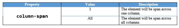 Currently, there's no support for this feature in Internet Explorer and the Opera browser. Please find the following table for Multi Column Layout properties.