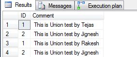 - INSERT INTO @Table3 VALUES(1,'This is Union test by Tejas')