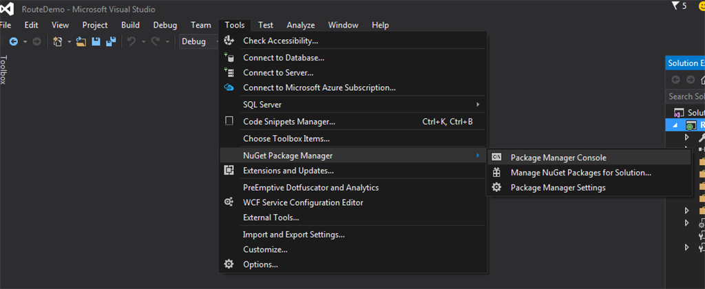 Step 2: To open the Package Manager Console, Tools –>NuGet Package Manager –> Package Manager Console.