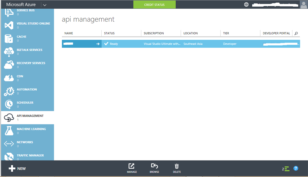 - Now from NEW API MANAGEMENT SERVICE: