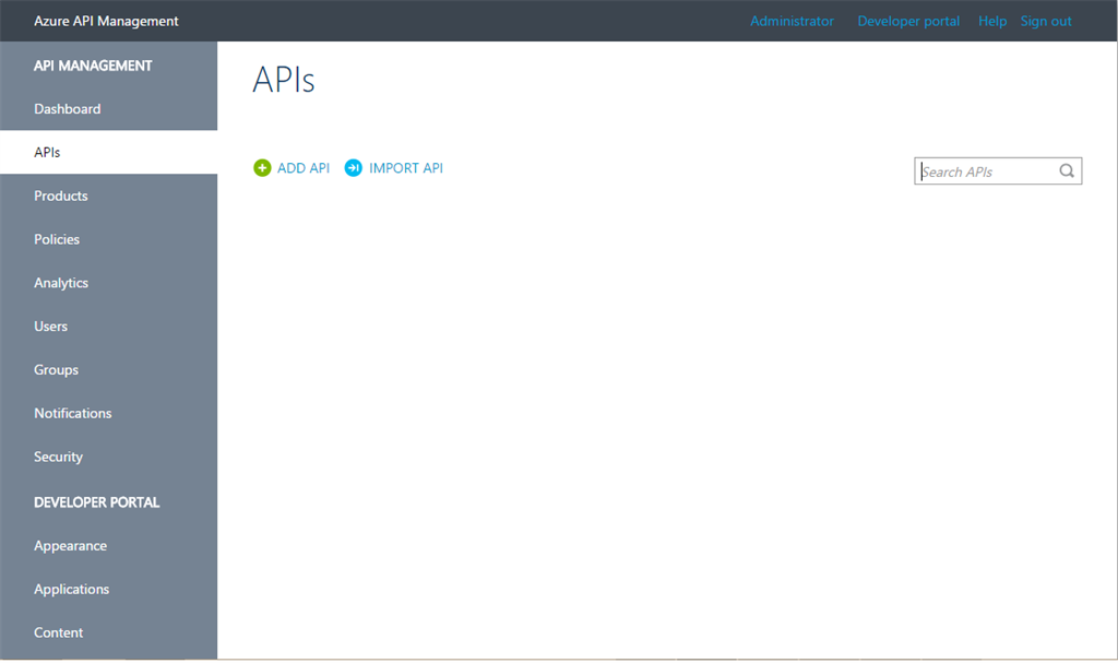 - To create our first API, click APIs from the API Management menu on the left and then click Add API.
