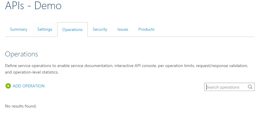 - Let's add our very first API resource as an operation in the API Management portal.