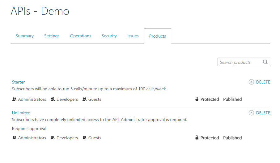 - The Products can be used to create and manage products for our APIs; in this article we will be not be discussing this section.