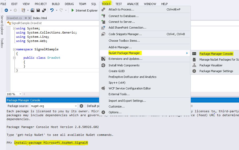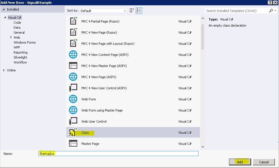 - [assembly: OwinStartup(typeof(SignalRSample.Startup))]