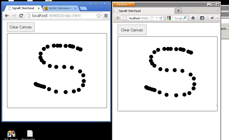 This sample shows the uses of mouse events on HTML5 Canvas and broadcasts the drawing to all clients using SignalR.