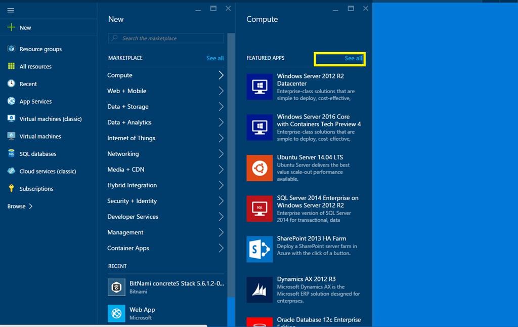 After clicking Compute, you will be provided with a lot of Virtual Machines and click See all option.