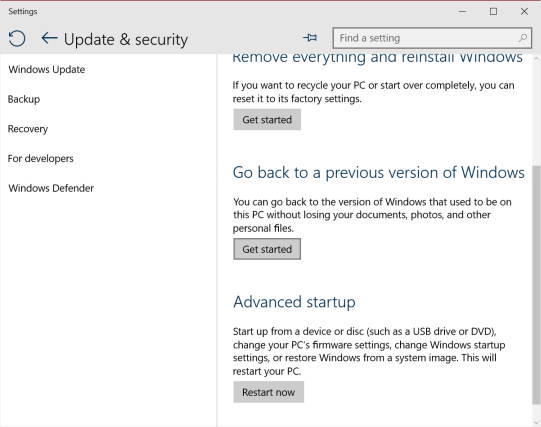 If you're like me and have just installed Windows 10 Insiders Preview build #10130 and are having problems with it, you may want to return to your previous build.