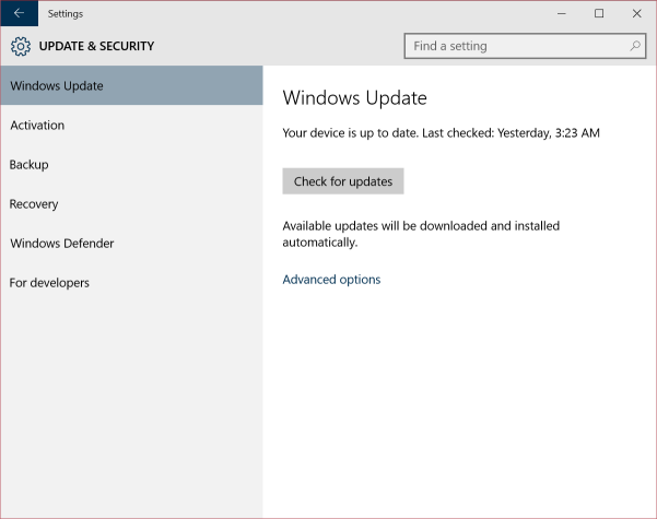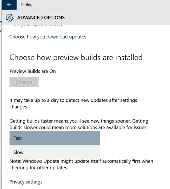 However, some people may not want all the updates immediately. Windows 10 lets you choose how fast you want new releases installed automatically. Windows Update Advanced options have a setting where you can determine how quickly you want to install and download new builds on your machine.