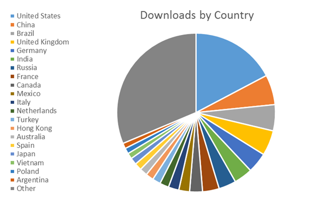 The United States is the most popular country for Windows Store app downloads followed by China, Brazil, UK, Germany, and India.