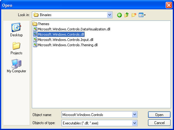 Figure 4: Choosing the dll file for the Silverlight Toolkit controls