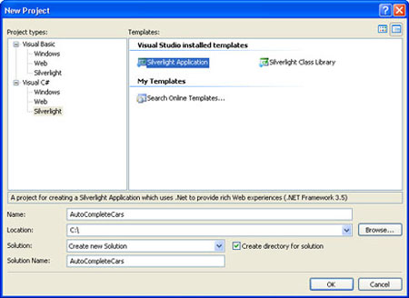 Let's go through this step by step. We will begin with creating a new Silverlight application using Visual C#. Consider that the scenario involves a Web portal for a car rental system. Assume that this the user interface of this Web application will require an AutoCompleteBox for the car manufacturer name. For the purpose of this article, let's just focus on this single field, without considering the rest of the UI.