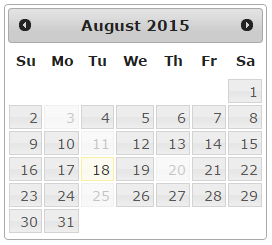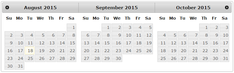 Figure 4 shows how to disable dates (3rd, 11th, 20th, 25th August 2015) in Gray so that the user can't select those dates.