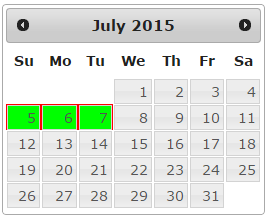 In the preceding code we are disabling dates from the 5th August to the 7th August. Here it used the beforeShowDay property to implement custom logic and it is setting up CSS class (selected) based on conditions.
