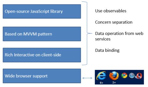 It uses the MVVM pattern which is the Model View View Model pattern and provides rich client-side interactivity, Don't worry about the browser support, your browser can support Knockout If you are using IE 6 or up.
